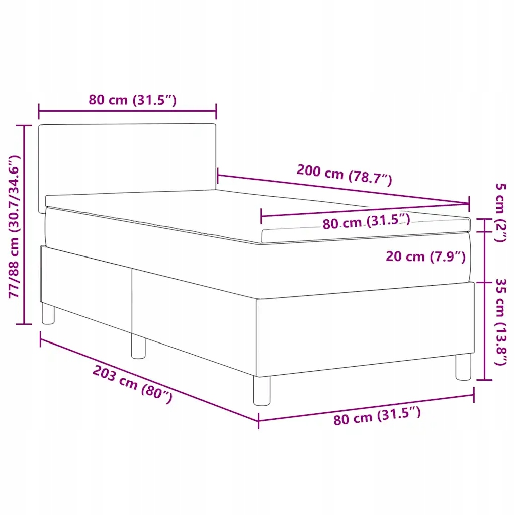 Ліжко Box Spring світло-сірий 203 х 80 х 88 см з регульованим узголів'ям
