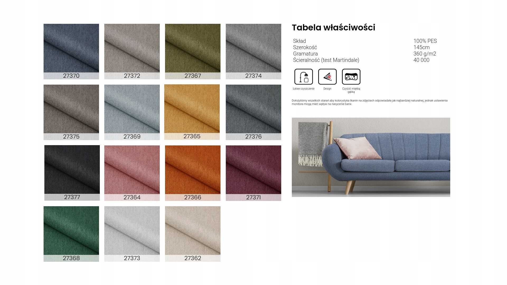 ⇝ впишеться в багато сучасних, але також і більш традиційних концепцій аранжування. Він має достатню міцність і ідеально вписується в оббивку меблів, що також буде виглядати надзвичайно стильно. У колекції використовується цінна технологія Nano Block, яка полегшує очищення. Рідини конденсуються на поверхні матеріалу і їх можна витерти, а сухі забруднення можна розмочити і видалити повністю, не пошкодивши саму оббивку меблів.