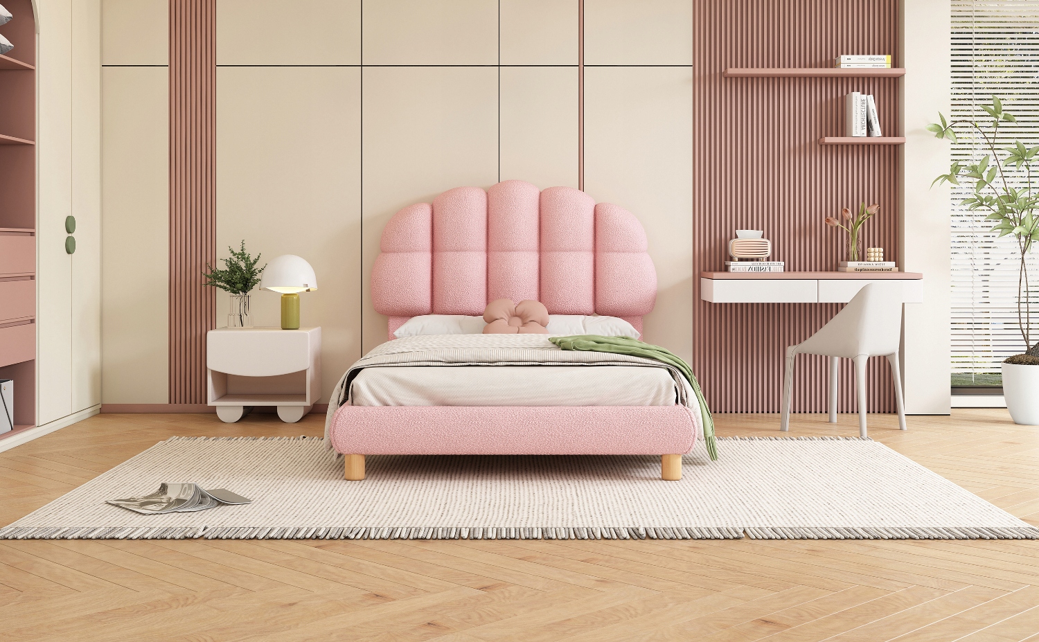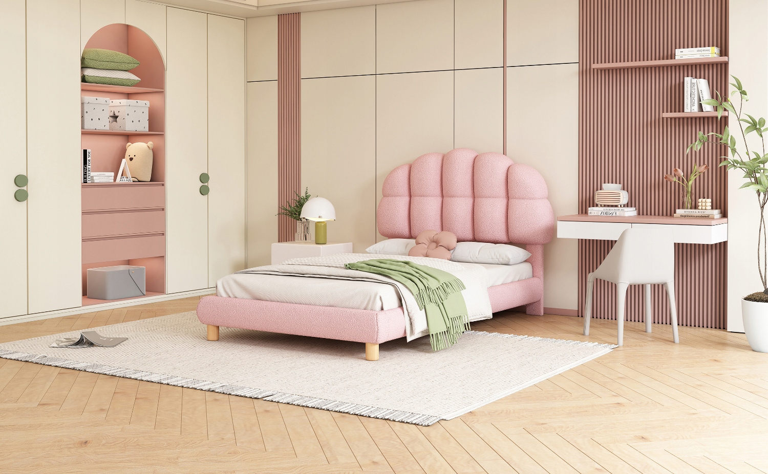 Ліжко дитяче підліткове 90x200 - рожеве, штучна шерсть + дерев'яний каркас