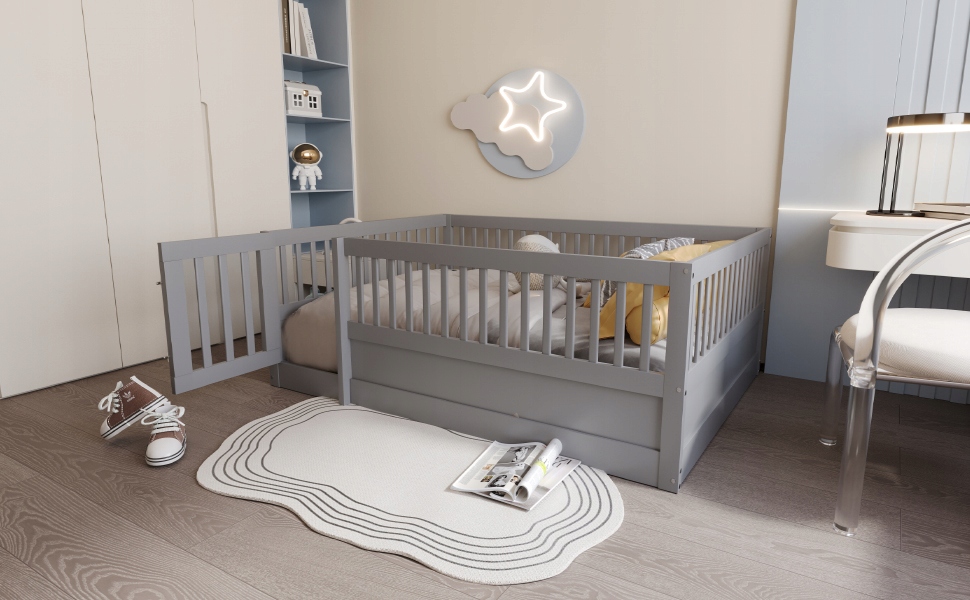 ⭐ Це унікальне ліжко на підлозі з відкритим каркасом служить багатьом цілям: використовуйте його як затишне місце для сну, окрему ігрову зону чи тихий куточок для читання.