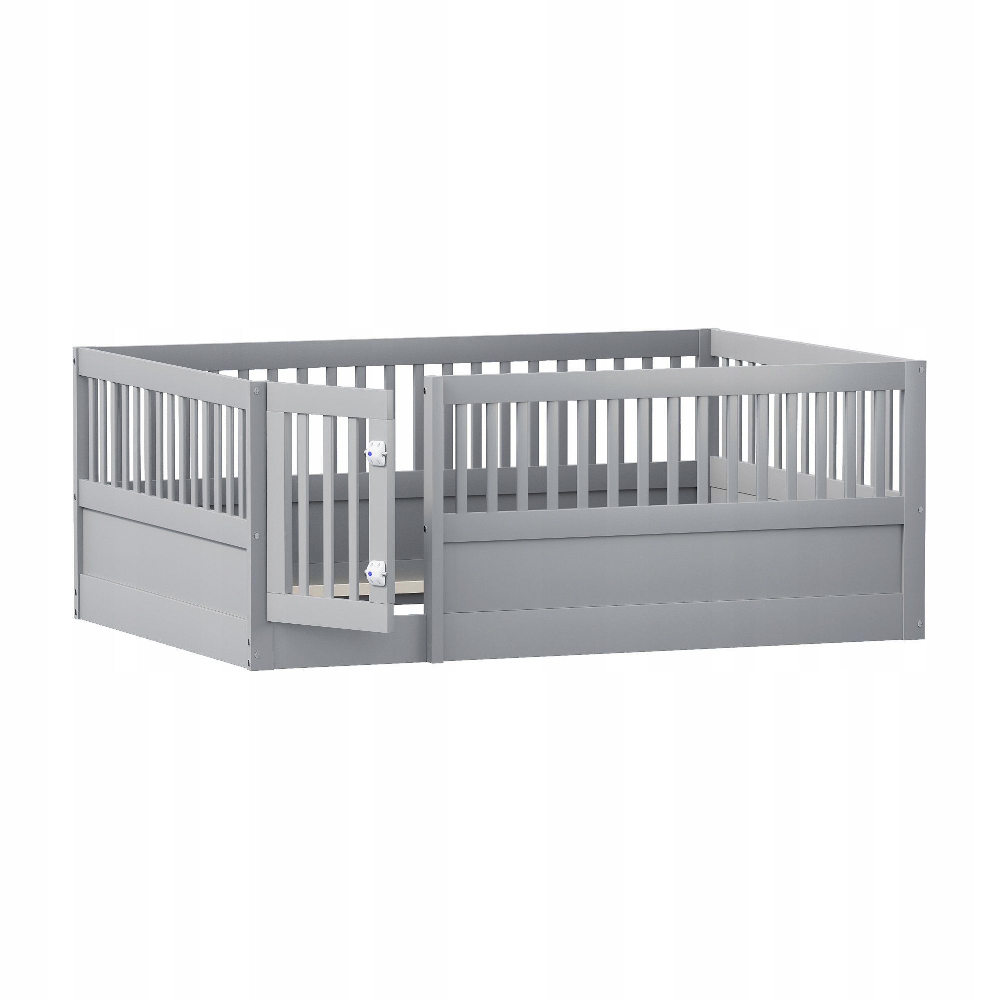 Ліжко дитячий будиночок з перилами і дверцятами сірий дерев'яний каркас 140х200 см