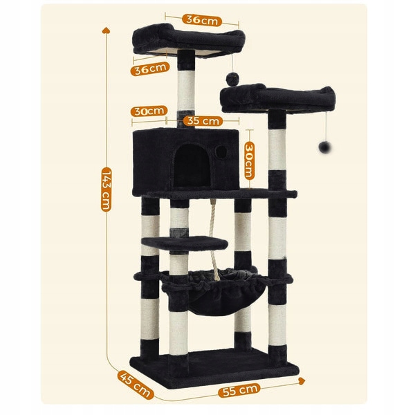 Представлена котяча резиденція має цілих 5 поверхів і 143 см у висоту, завдяки чому ваш кіт почуватиметься тигром, що нишпорить у кроні високого дерева.