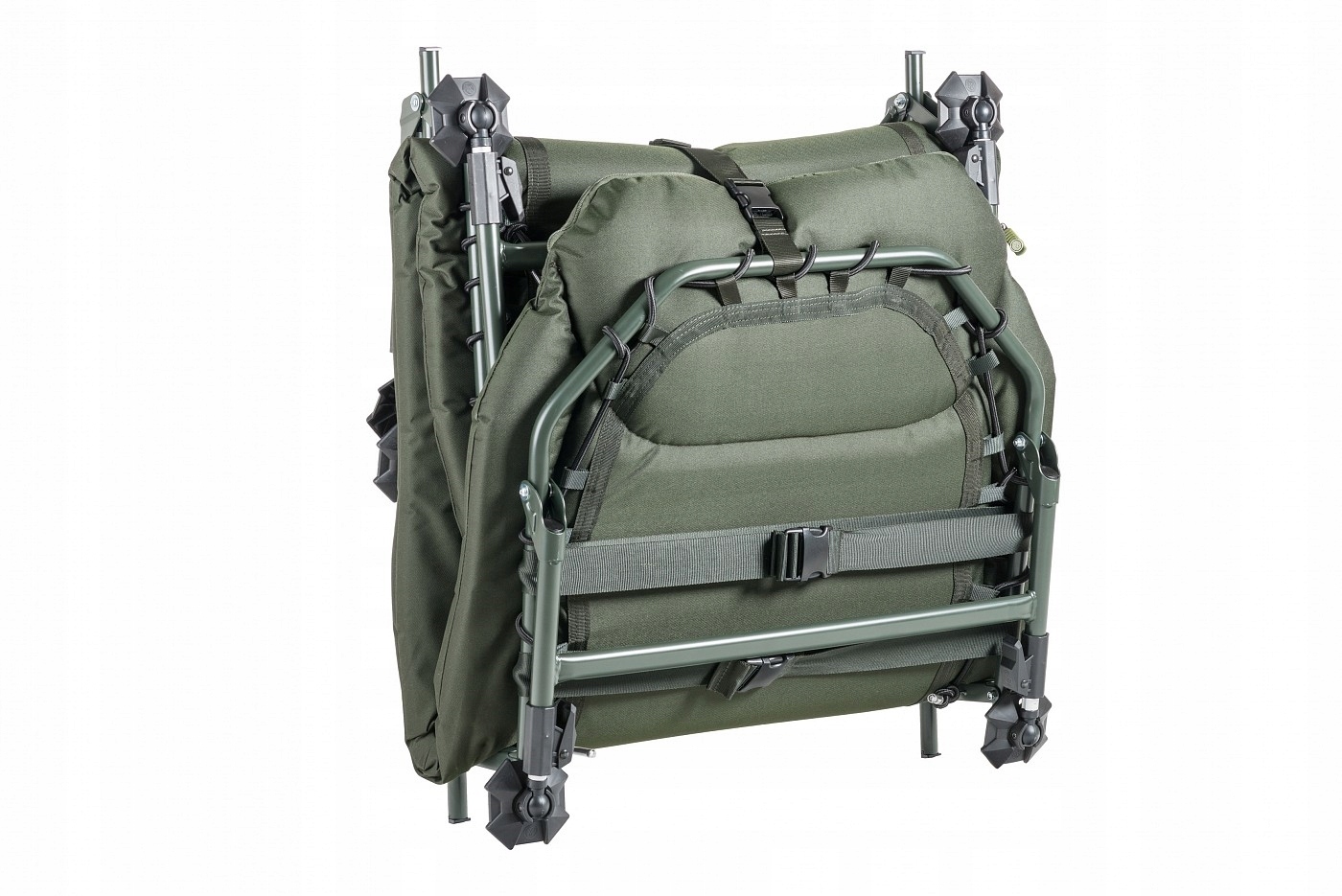 Надзвичайно легке, велике та на 100% плоске ліжко з дуже привабливим цифровим камуфляжним принтом із серії CamoCODE. Надзвичайно товстий і зручний матрац з верхнім шаром, покритим флісом, пропонує найефективнішу систему регулювання жорсткості за допомогою натягу за допомогою еластичної шнурівки знизу. Ще однією перевагою є ніжки з великими регульованими стопами та можливістю їх значного висування.