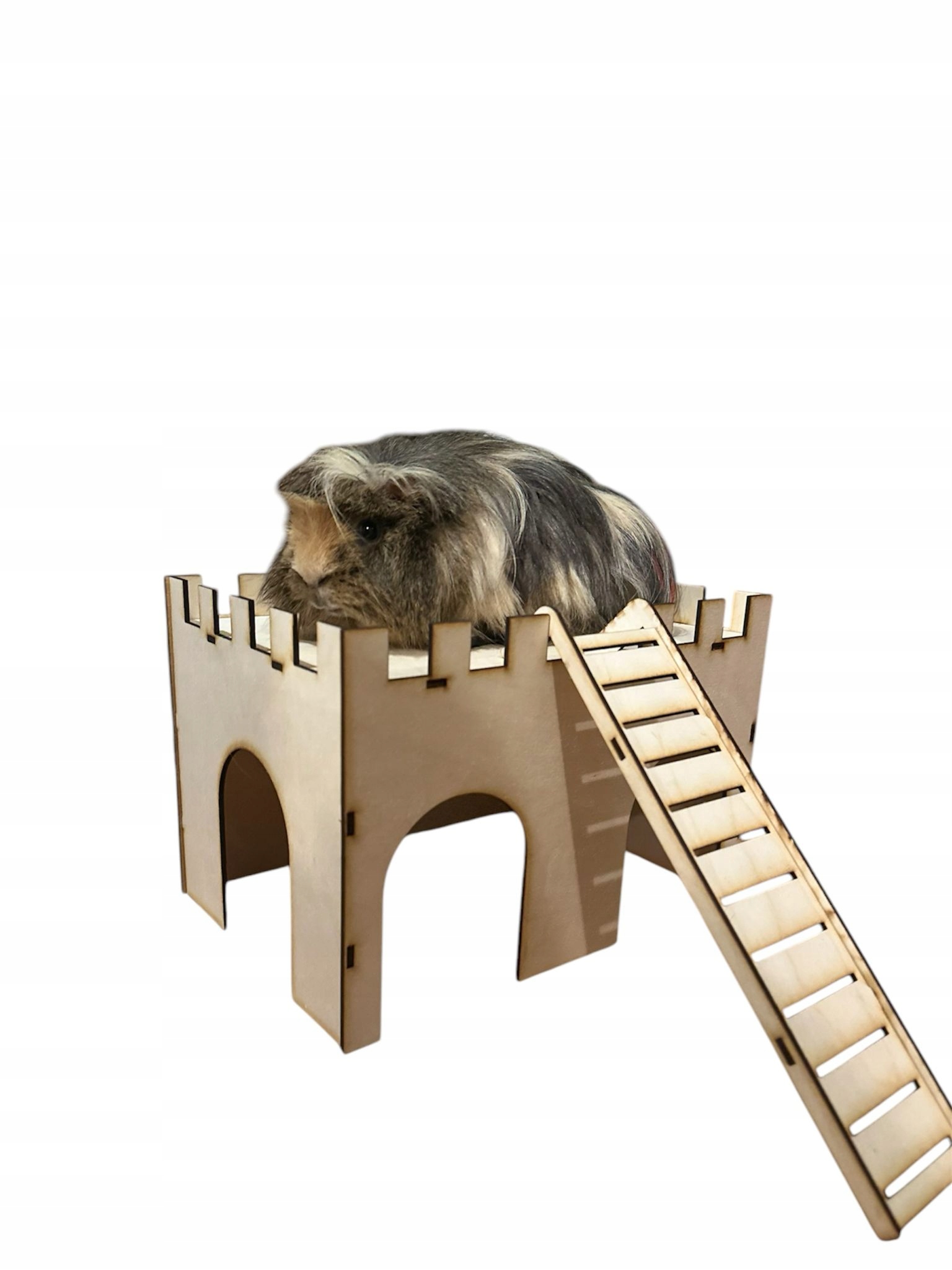 ⭐ Зроблено з 3 мм природного фанери, без використання клею, він повністю безпечний для тварин. House має дизайн замку, який змусить вашого вихованця мати можливість насолоджуватися як затишним лігвом , так і просторою терасою.