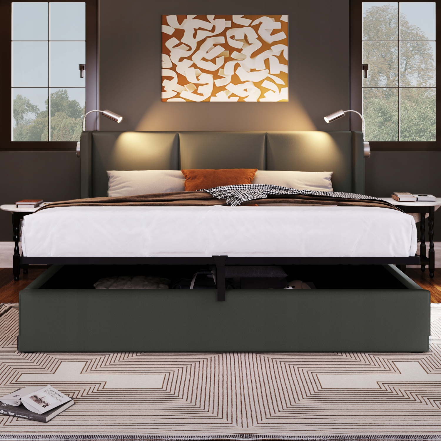 Нічник для читання:Нічник для читання ідеально розташований, щоб забезпечити м’яке світло, не заважаючи вашому партнеру. Його гнучкий дизайн дозволяє регулювати напрямок світла відповідно до ваших потреб, дозволяючи вам спокійно читати.