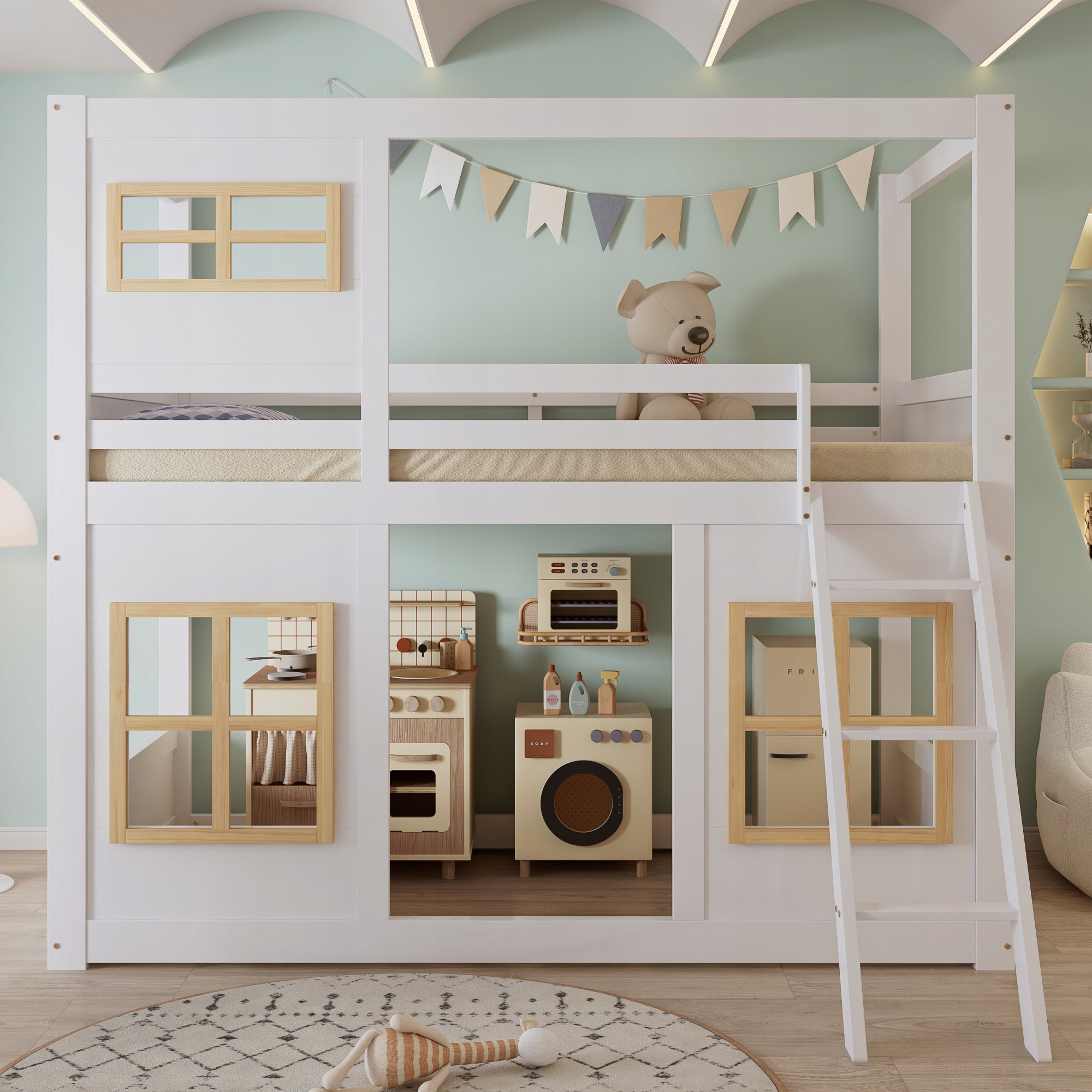 - Дитяче двоярусне ліжко з привабливим дизайном: це дитяче двоярусне ліжко має чарівний вигляд завдяки красивим вікнам, які пропускають світло та стимулюють уяву дитини.