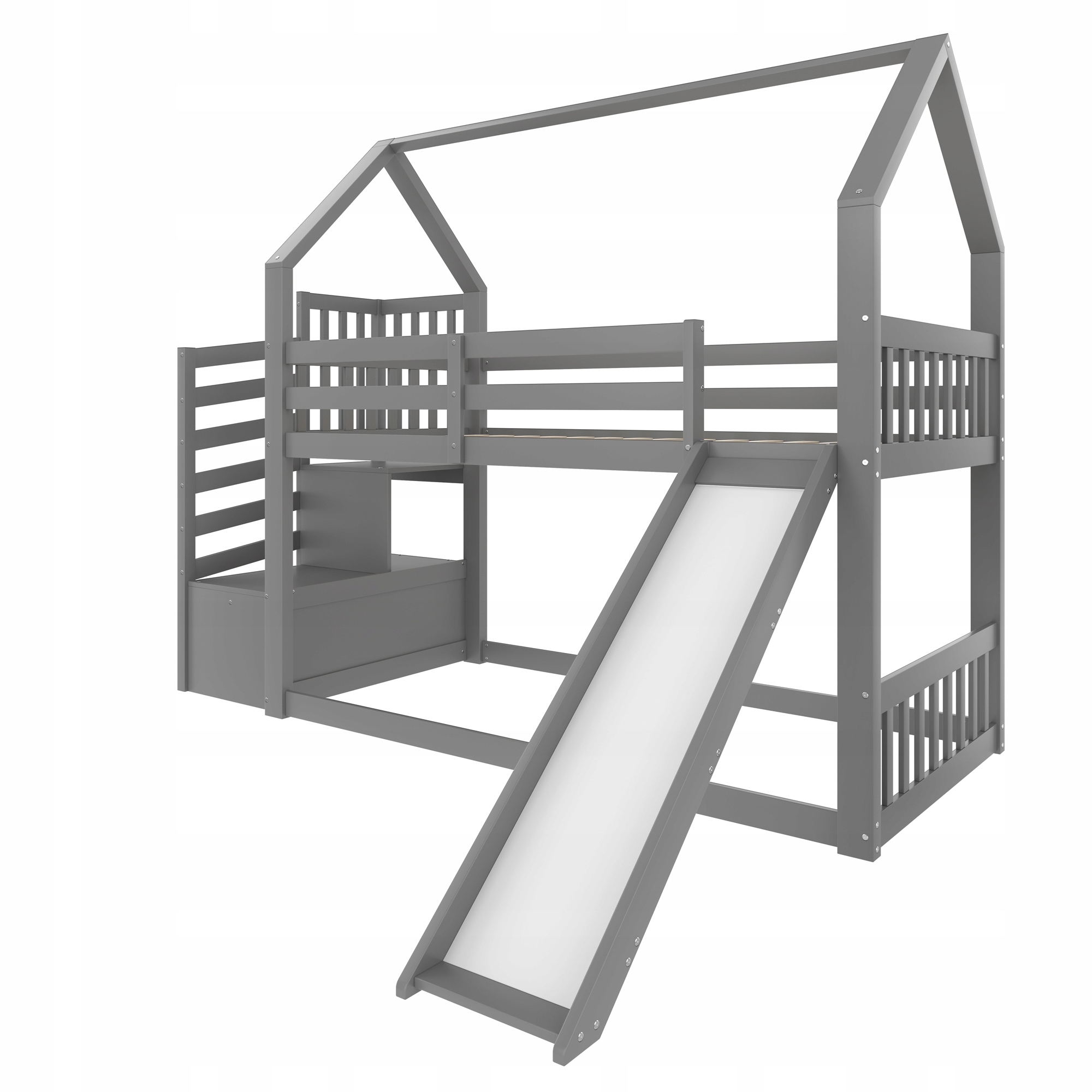Двоярусне ліжко зі сходинками та гіркою, ліжко-домашнє (без матраца), дитяче ліжко з поручнями, підходить для дітей та підлітків, 90х200 см, сірий