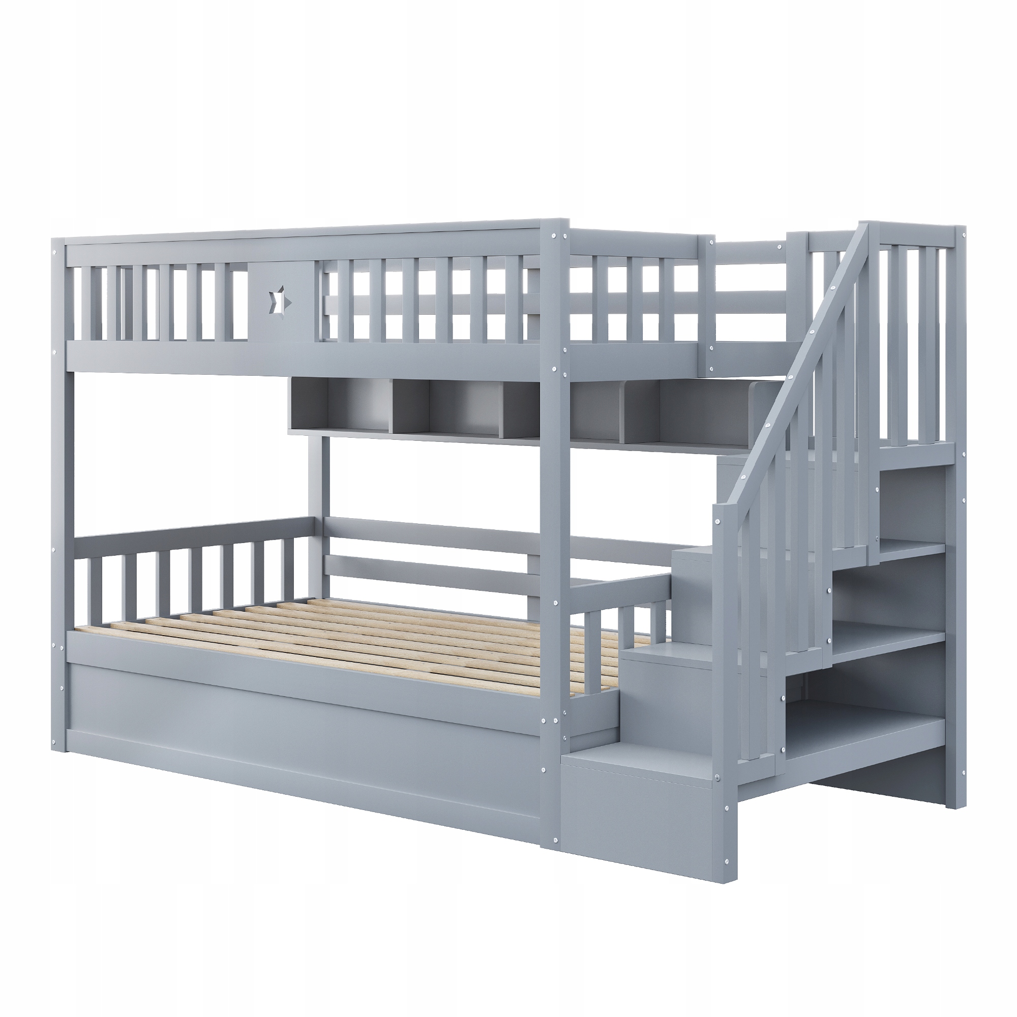 Ліжко двоярусне Ліжко дитяче 90*200 см Гідравлічні дерев'яні сходи сірий