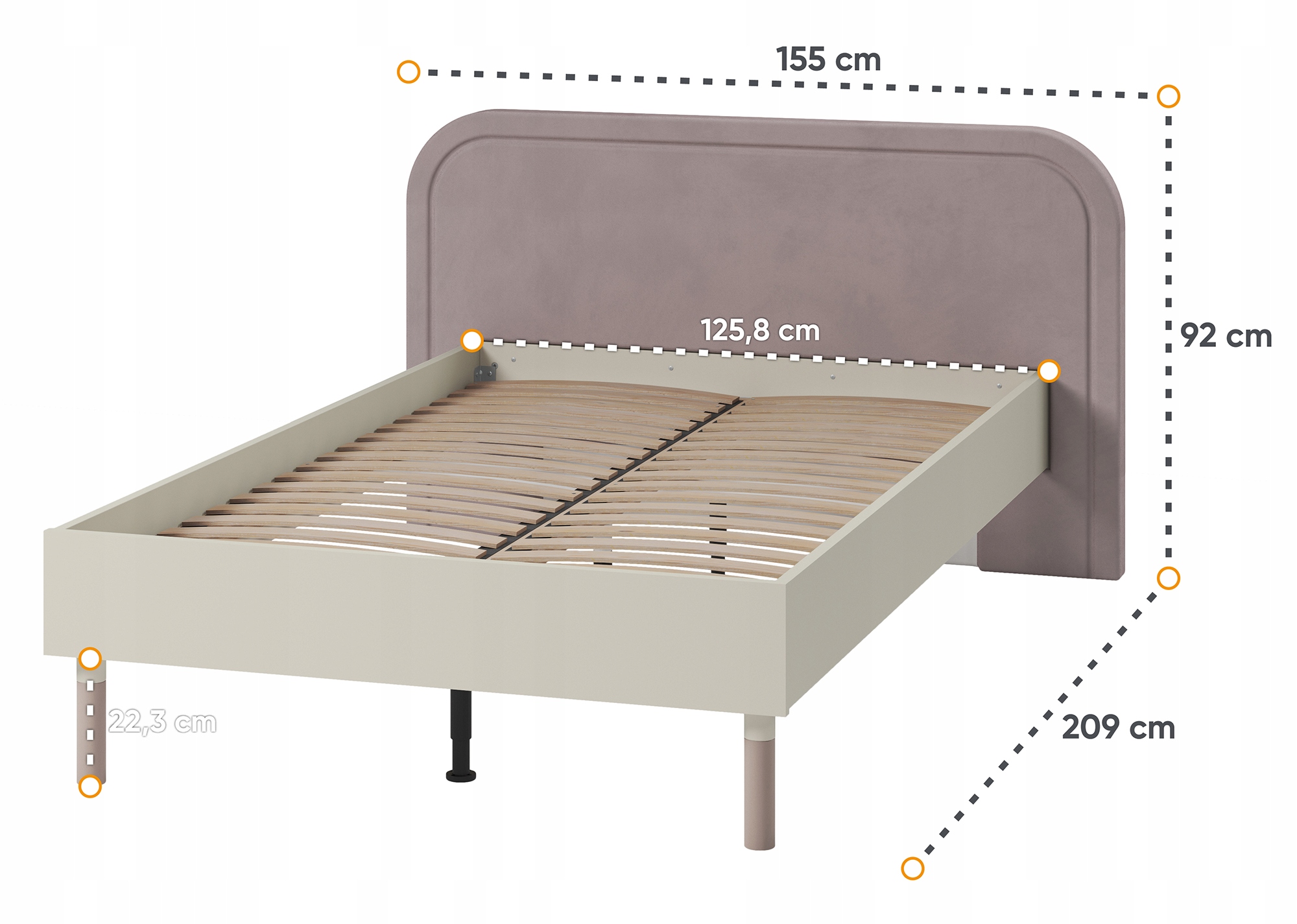 Комфортне спальне ліжко HR-09 - ідеальне рішення, яке забезпечить вашій дитині комфортний і спокійний сон щоночі. Стійка конструкція та рама сходинок гарантують належну підтримку тіла, що забезпечує здоровий сон та правильне положення хребта. Меблі тримаються на тонких ніжках, що робить їх надзвичайно легкими та вишуканими. Поєднання таких кольорів, як кашемір і трюфель, робить цей предмет меблів не тільки позачасовим, але й ідеально впишеться в кімнати дівчат різного віку. Оснащене м’яким м’яким підголівником, воно гарантує комфортну підтримку під час вечірнього перегляду фільму.