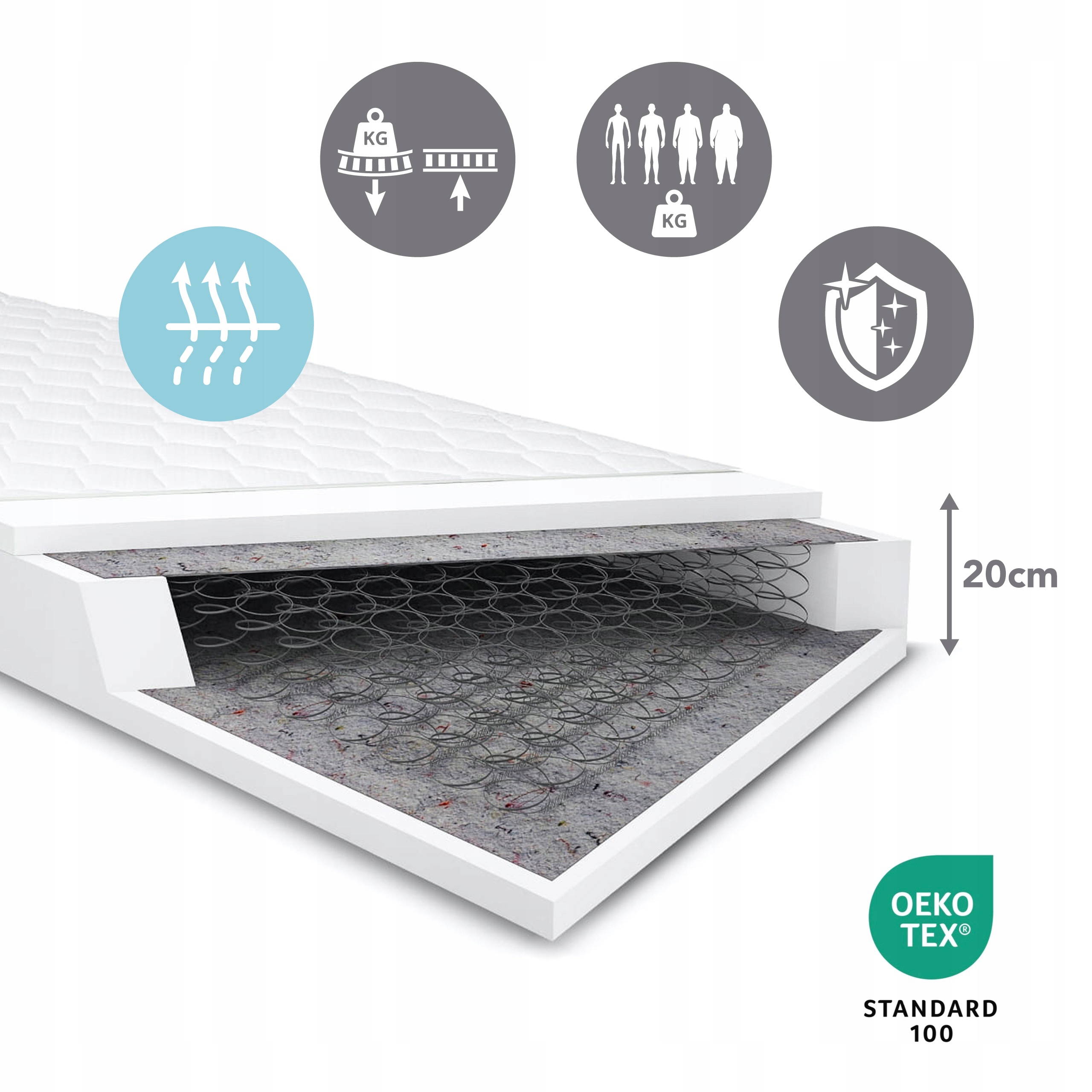 - Міцний і стійкий до деформації - пружинна система Bonnell рівномірно розподіляє вагу, завдяки чому матрац зберігає свою форму роками.