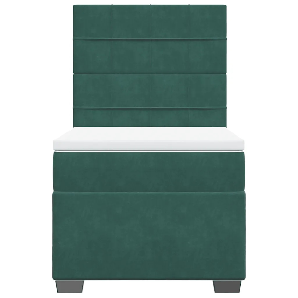 Континентальне ліжко з матрацом, зелений, оксамит, 80х200 см