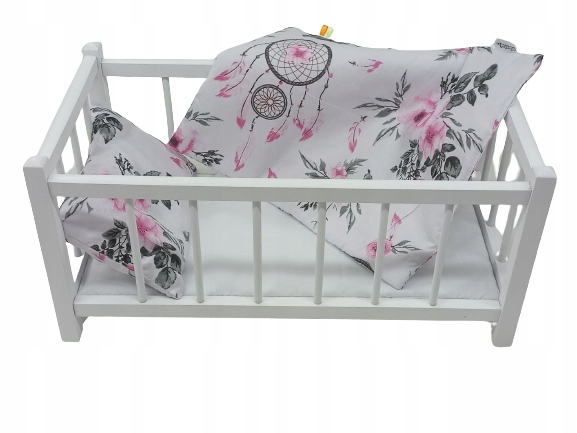 Ліжко лялька, дерев'яна, біла + постіль