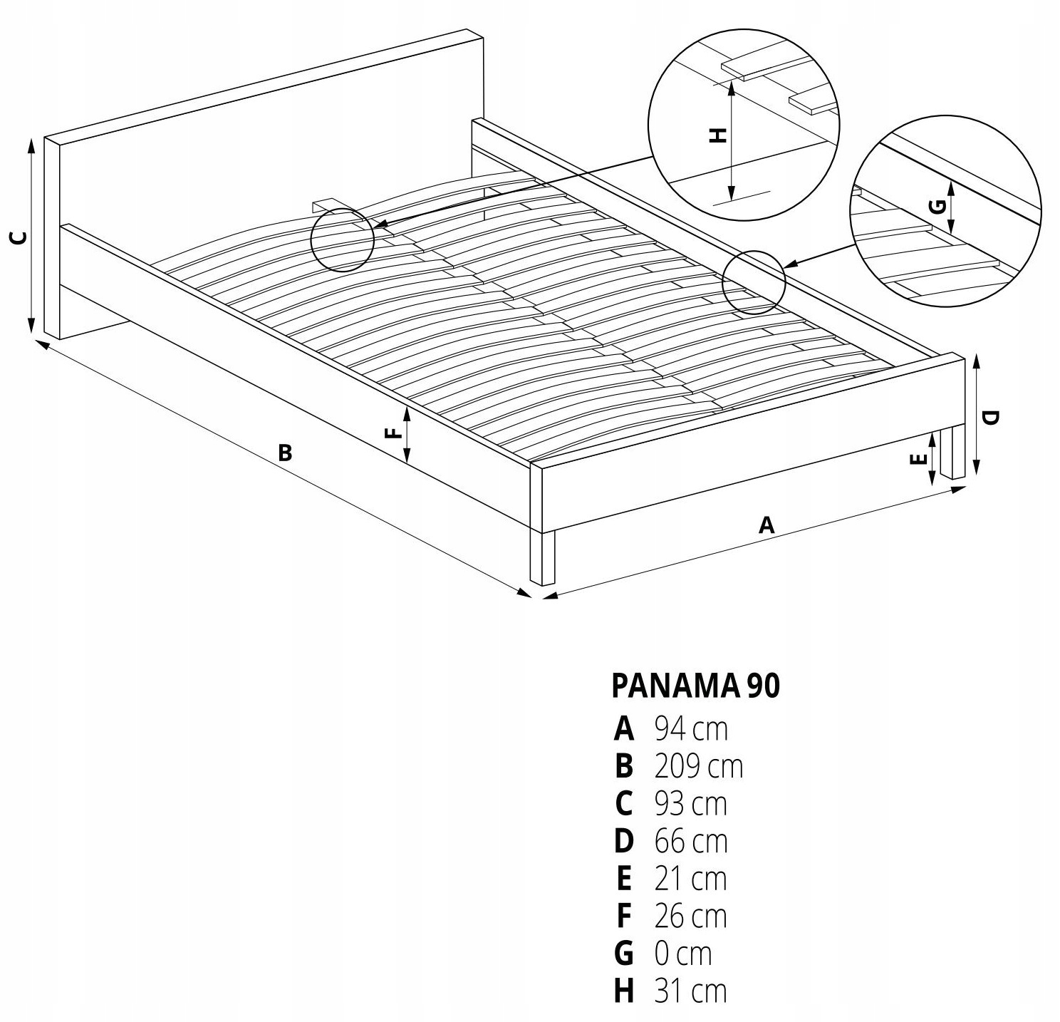 Ліжко 90х200 см Панама Халмар