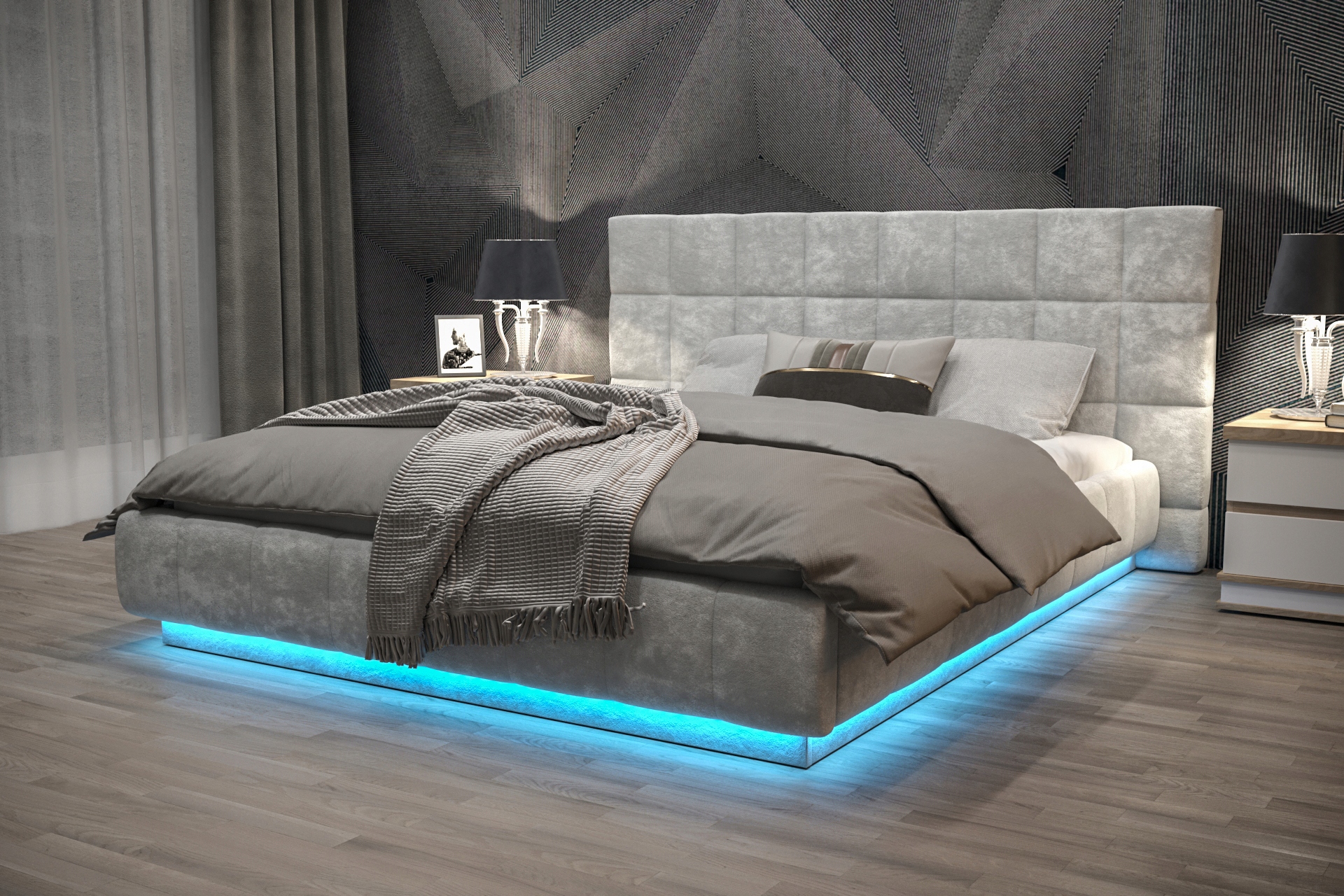 Ми додали різнокольорові , дистанційне керування світлодіодними світильниками до ліжка. Ви самі вирішуєте характер спальні. Додайте енергії улюбленими кольорами.