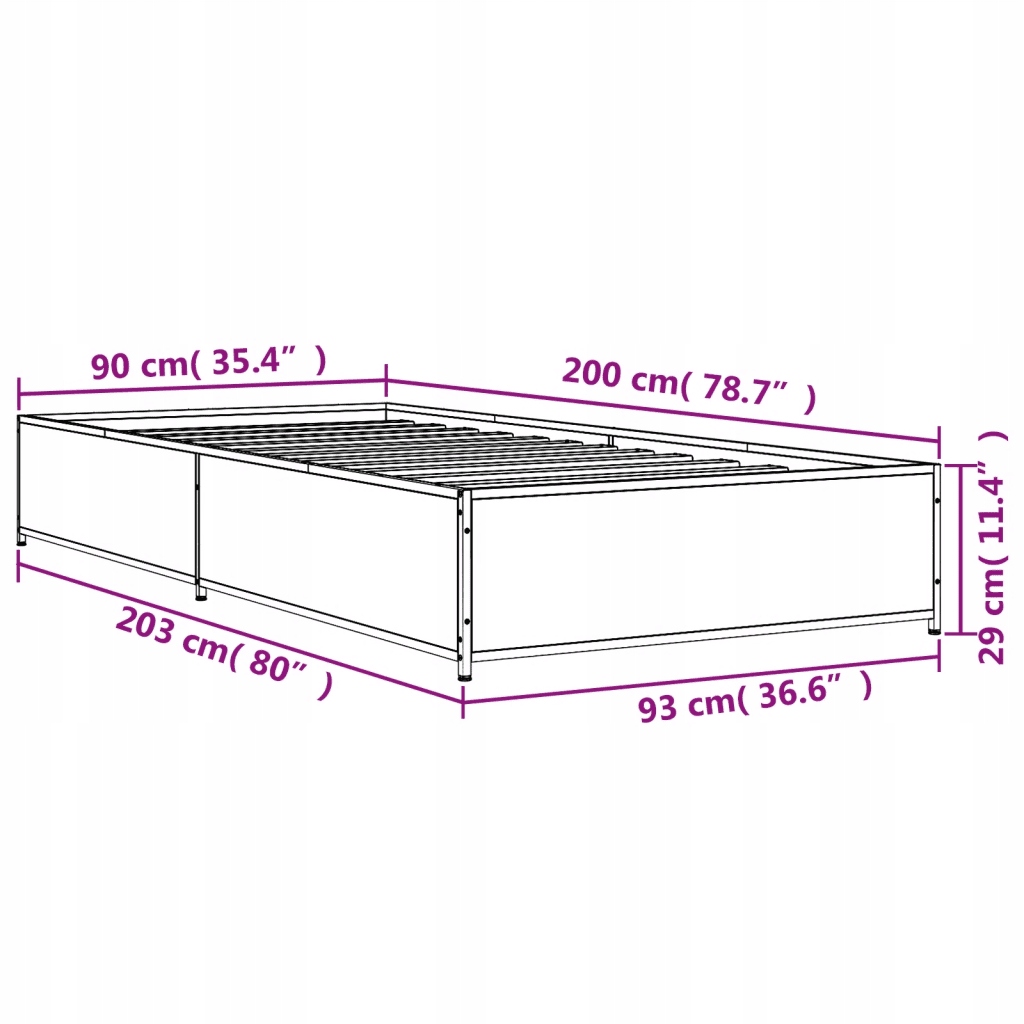 рамка ліжка з дерева метал 203x93x29 сірий дуб