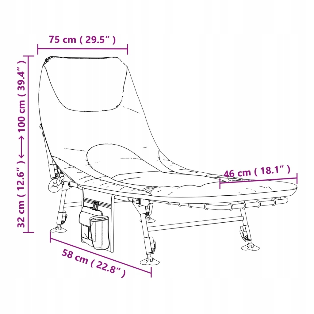 - Практичний дизайн: регульовані ніжки з грязьовими ніжками забезпечують комфорт використання на нерівній місцевості та запобігають просіданню на м’якій поверхні. землю. Крім того, мішечок збоку полегшує зберігання дрібних речей.