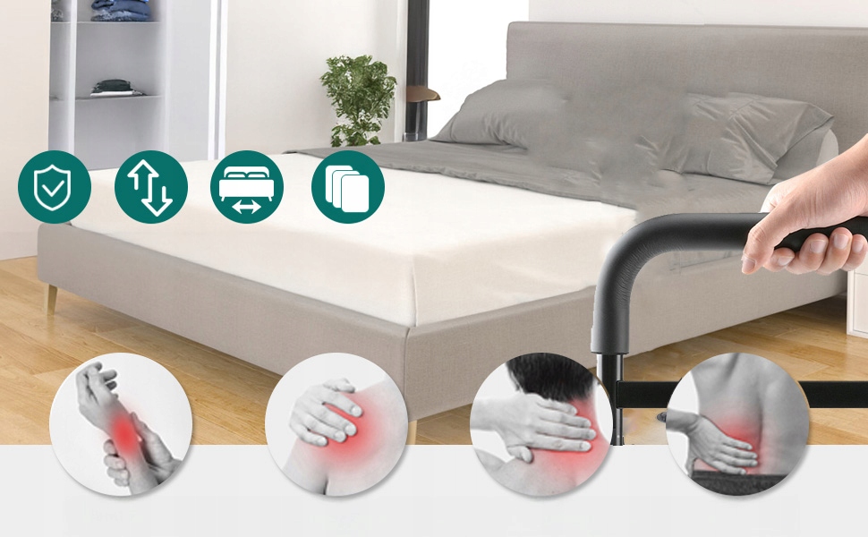 регулювання висоти від 39,5 до 56,5 см (15,6 до 21,9 дюймів) краще підходить до матраців, забезпечуючи додаткову безпеку та більш персоналізовану форму. Можна використовувати в одиночних, подвійних, повнорозмірних, розміром з королевою та розміром з королем (не рекомендується для ліжок з регульованими килимками татамі).
