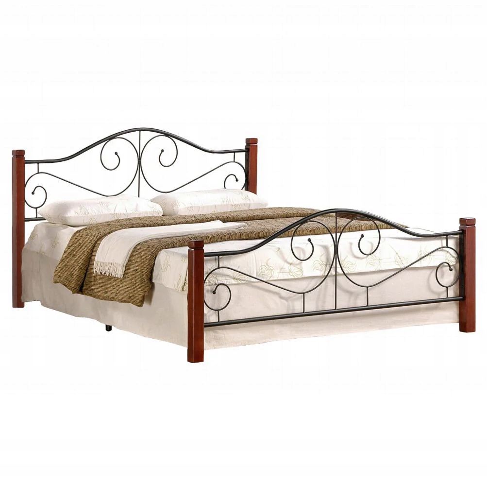 Ліжко металеве 160x200 двоспальне дерев'яне з каркасом VIOLETTA Antique Cherry Halmar