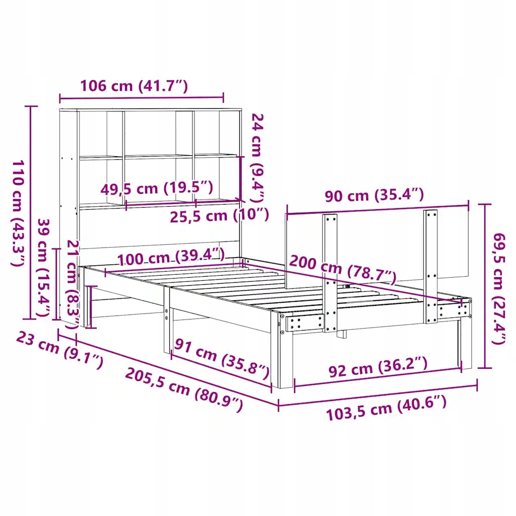 Ліжко з книжковою шафою, без матраца, 100х200 см, сосна