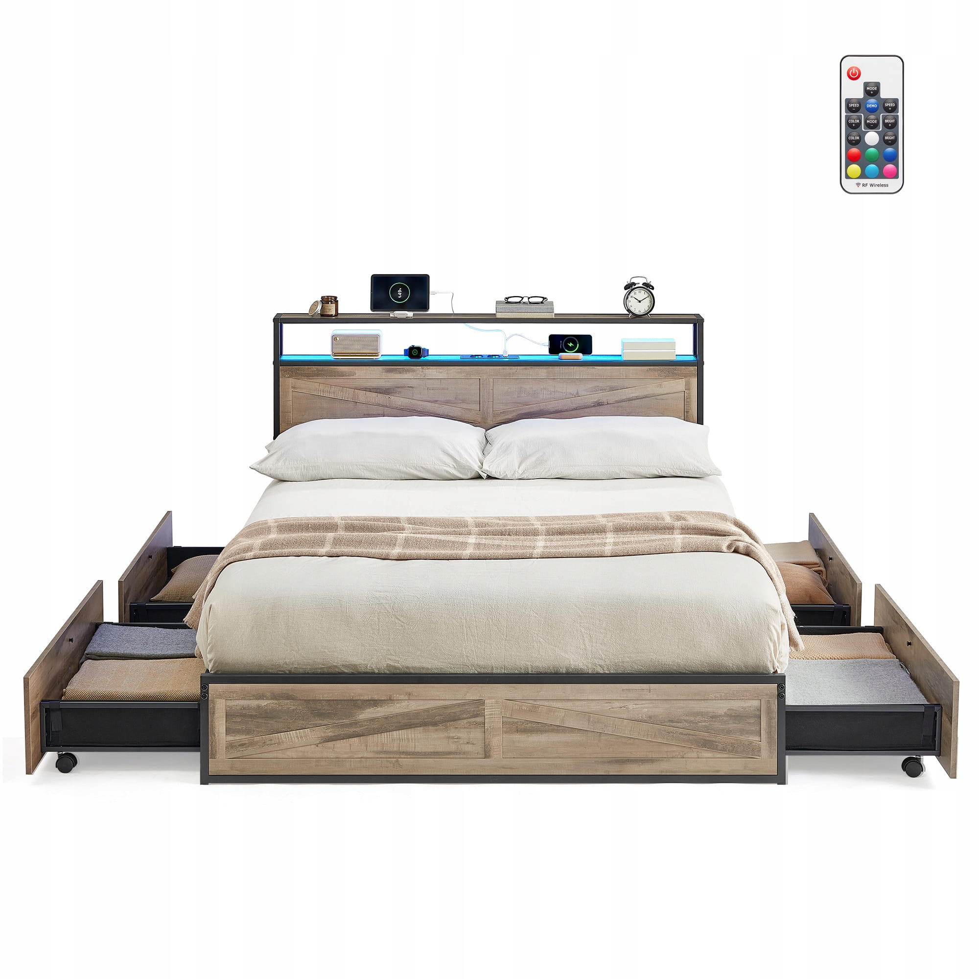 ліжко з полицею з ящиками та освітленням світлодіод сільського горища