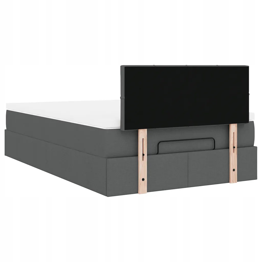 Темно-сіре ліжко з пуфом 203 x 120 x 88 см зі світлодіодом і верхом 120 x 200 x 5 см