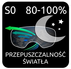 Фільтр категорії S0 - пропускання сонячного світла від 80 до 100%. Окуляри з цим фільтром рекомендовані в першу чергу для нічної їзди при штучному освітленні, а також під час снігопаду та сильного туману.