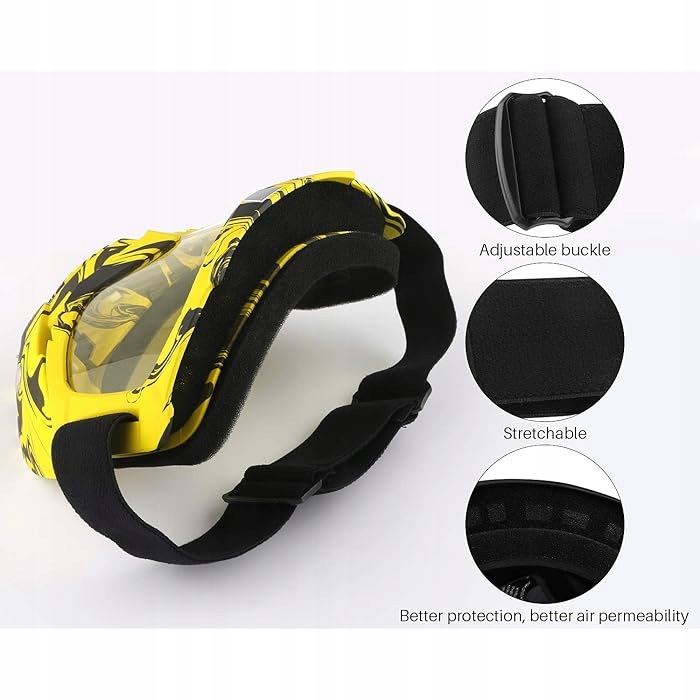Маска для мотоциклетних окулярів легко регулюється, нековзний ремінь підходить для будь-якого розміру голови, дихаюча та гіпоалергенна піна забезпечує винятковий комфорт під час їх носіння.
