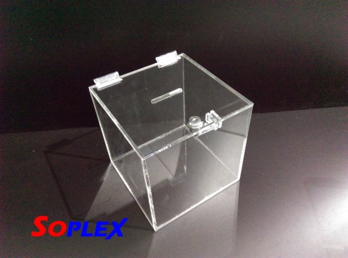 Скарбничка з безбарвного оргскла (ПММА - поліметилметактилат) з товщиною стінки 5 мм і розмірами (ширина, глибина і висота):