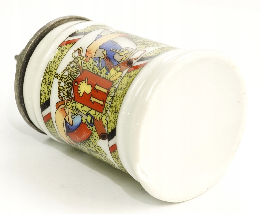 оригінальний лож водосховищ, 11 полковник баварського польового артилерійського полку, що бореться під час Першої світової війни, порцеляна, кришка Zinnoa; Пост -двоанний продукт, розмір: висота 9 см, базовий діаметр 5 см, дуже хороший стан, низький дефект порцеляни біля основи. Рекомендую, оригінальний рідкісний предмет за доступною ціною. Надзвичайно цікавий рідкісний оригінальний об’єкт. Умова ідеально видно на знімках на описі аукціону.