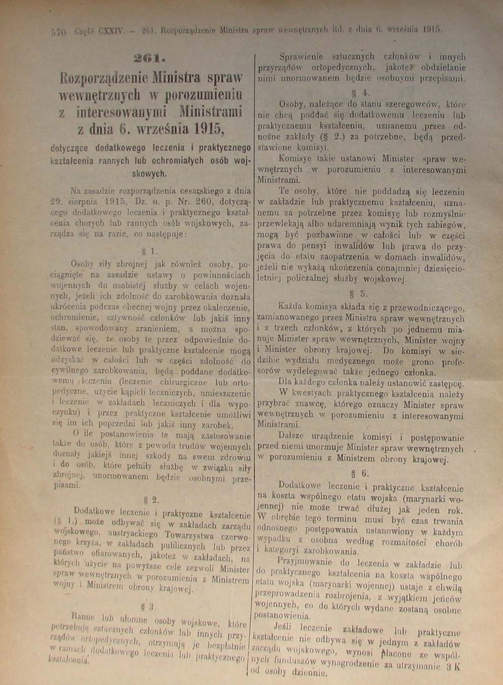 ЛІКУВАННЯ ТА НАВЧАННЯ ПОРАНЕНИХ ВІЙСЬКОВИХ .1915