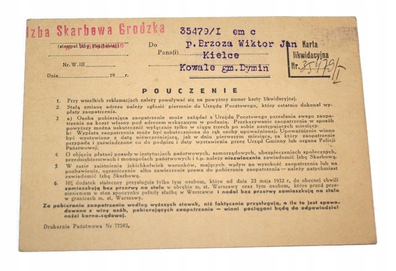 ліквідаційна карта, ПОДАТКОВА ПАЛАТА ВАРШАВСЬКОГО ПОВІТУ