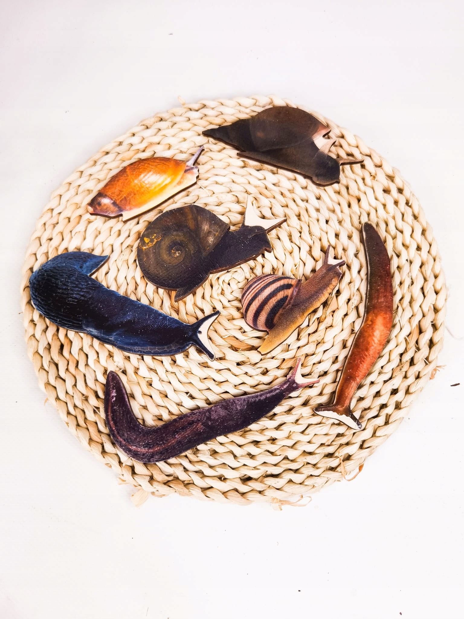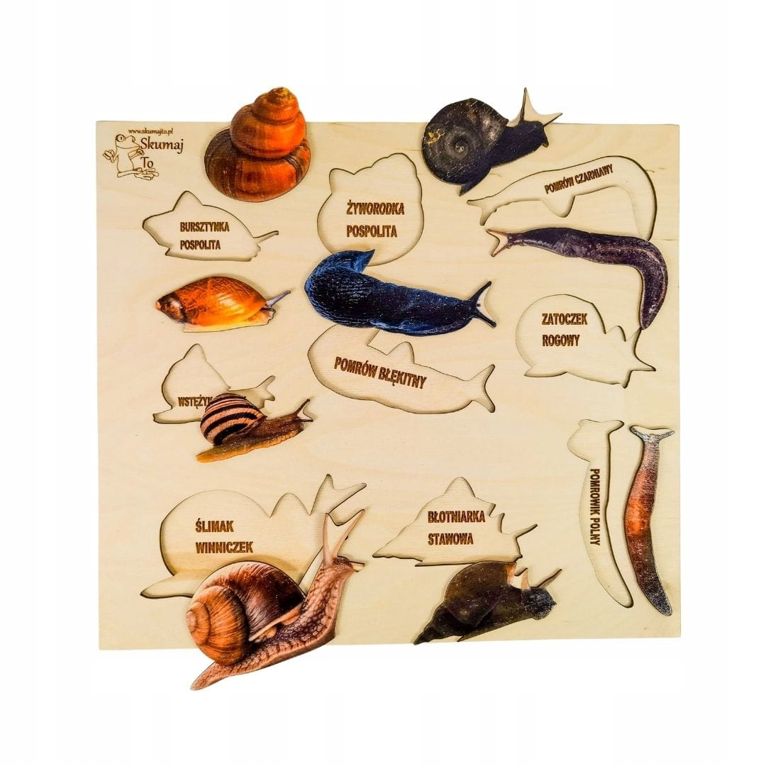 Ślimaki, drewniana układanka, gatunki ślimaków