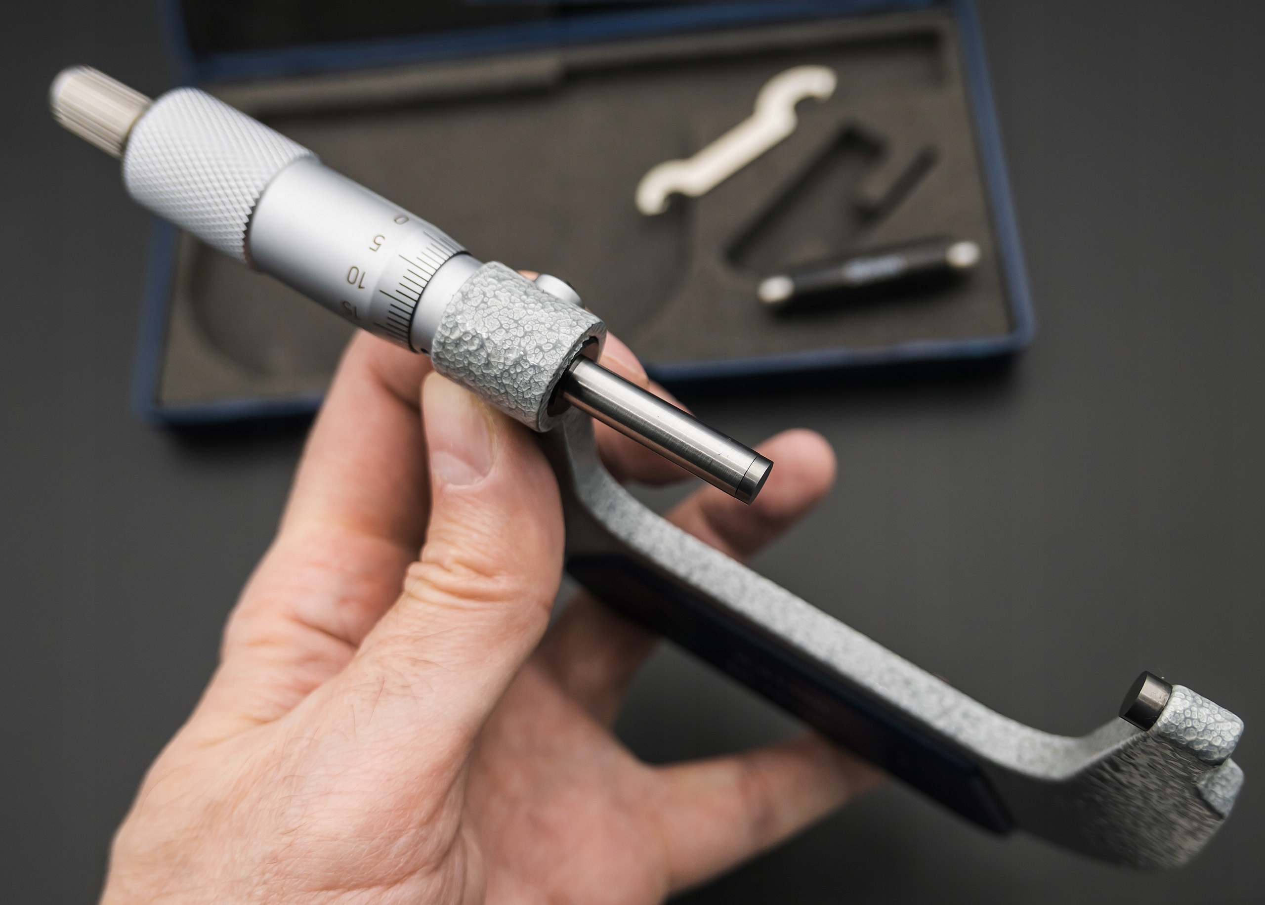 Кований лук і матова хромована шкала. Загартований шпиндель діаметром 6,5 мм з точно накладеними вимірювальними поверхнями зі спечених карбідів. З муфтою зчеплення та важелем фіксатора. Відповідає стандарту DIN 863.