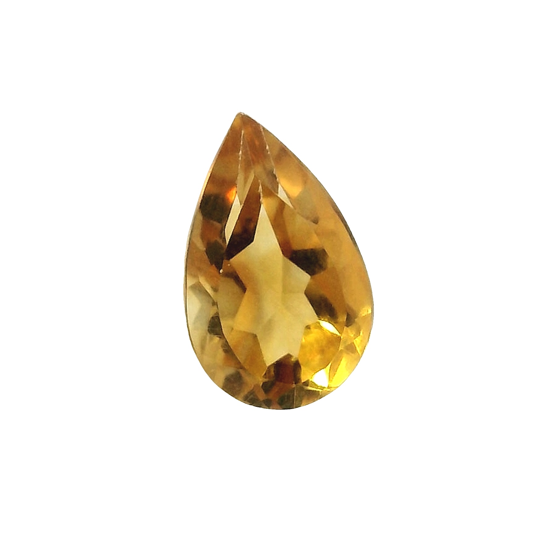 Натуральний цитрин вагою 0,79 карат, огранка у формі груші (сльози) в огранці. Камінь має інтенсивний жовтий колір і зображений на фотографії справжнього виробу.