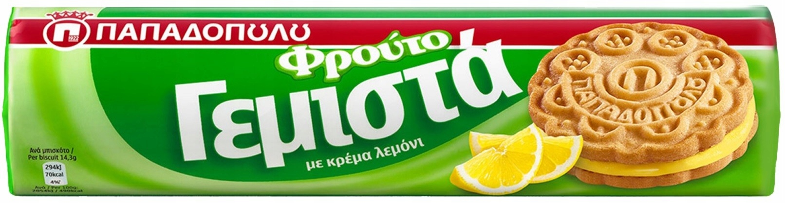 Пісочне печиво Papadopoulos Lemon Creme — це солодощі, які у багатьох греків асоціюються з дитинством :) Пісочне печиво покрите блискучим лимонним кремом. Упаковані в класичний «тюбик», ви завжди можете мати їх під рукою на роботі чи навчанні :)