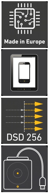 - Роздільна здатність DSD: від DSD 64 до DSD 256 (WLAN до DSD 128)