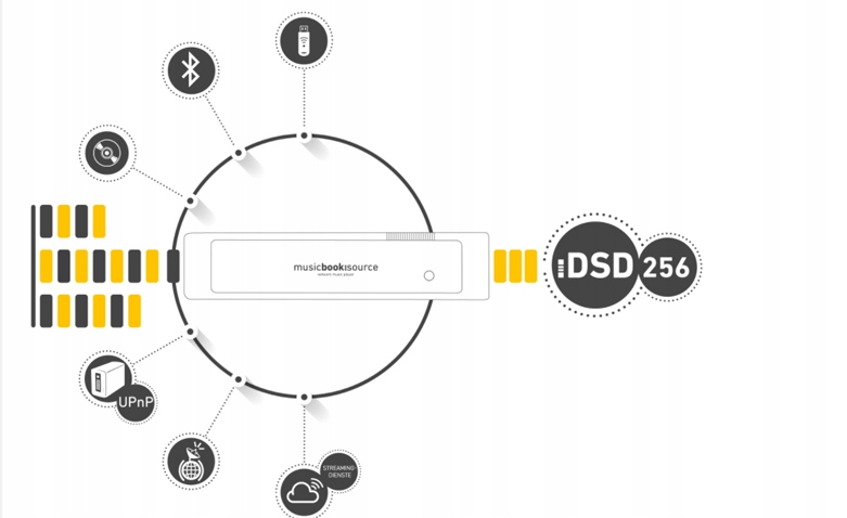 - Технологічно Musicbook SOURCE II є кроком попереду конкурентів: усі цифрові сигнали можна конвертувати у DSD 256, формат даних, який дуже популярний серед аудіофілів у всьому світі. Цей повністю новий підхід також допомагає «звичайним» записам CD-якості звучати винятково добре.