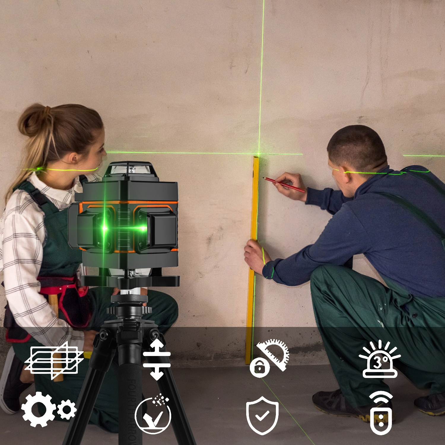 16 лазерних ліній у технології 4D - ідеально підходить для точного горизонтального та вертикального вирівнювання.
