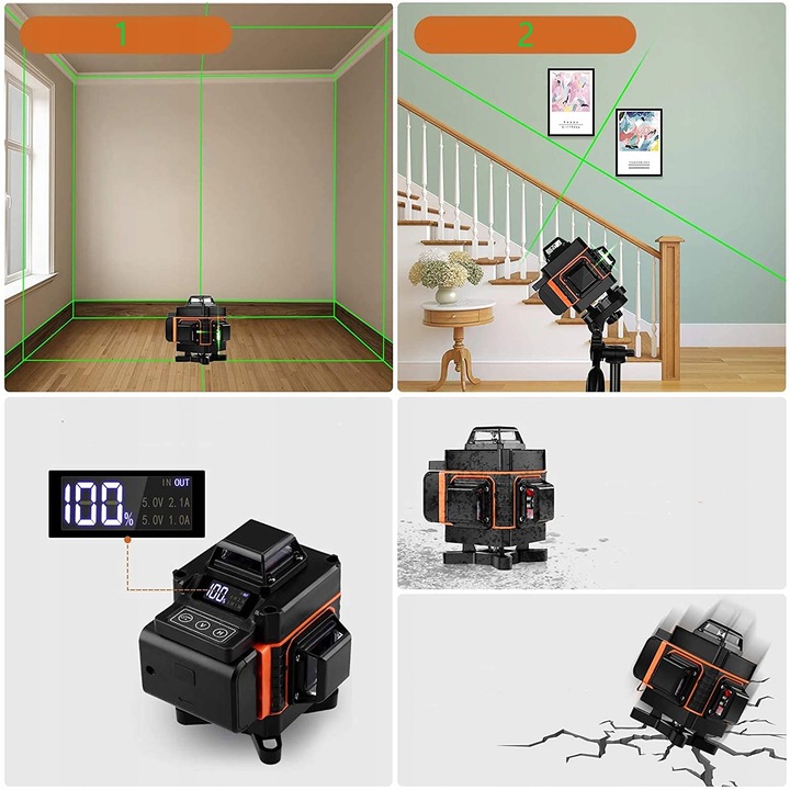 🔹 4x360° лазер лінії - дві горизонтальні та дві вертикальні, ідеальні для точного вирівнювання.