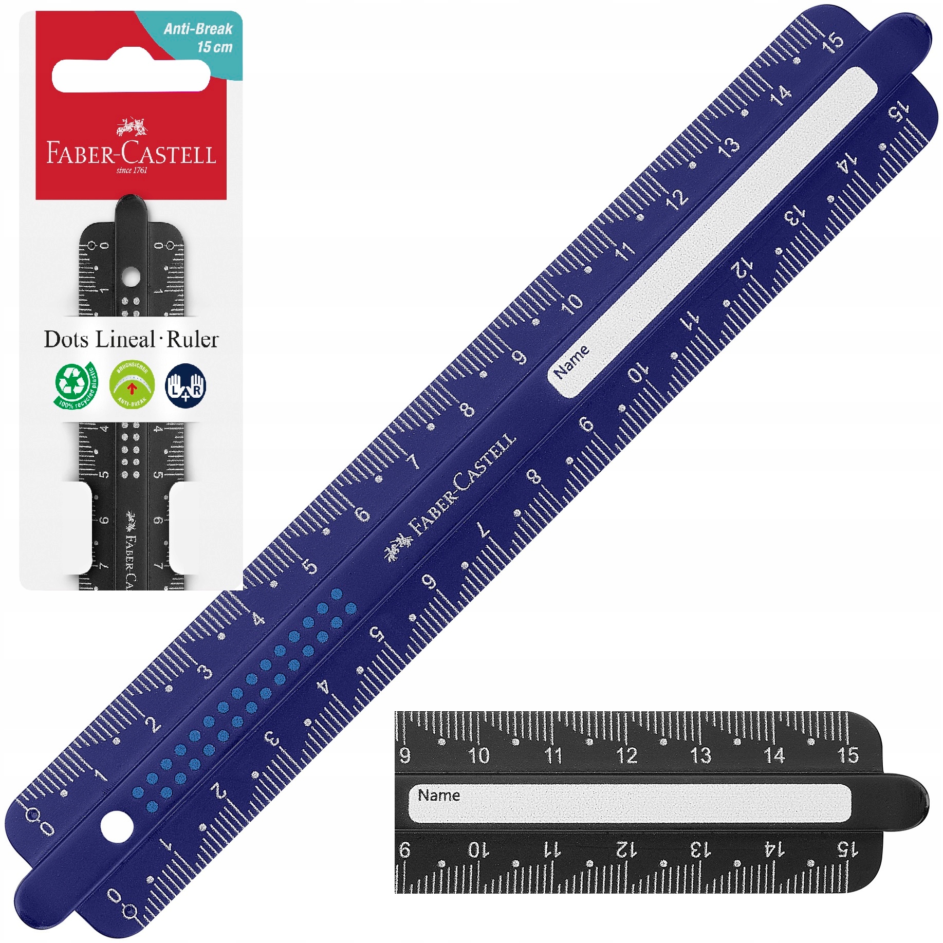 Лінійка для точок Faber-Castell 15 см у чорному та темно-синьому кольорах. Привабливий мотив із крапками, характерний для цієї серії. У кольорах металік та блиск. Стійкий до зламів. Підходить для правшів і лівшів. З коробкою імені. Виготовлений із 100% переробленого пластику.