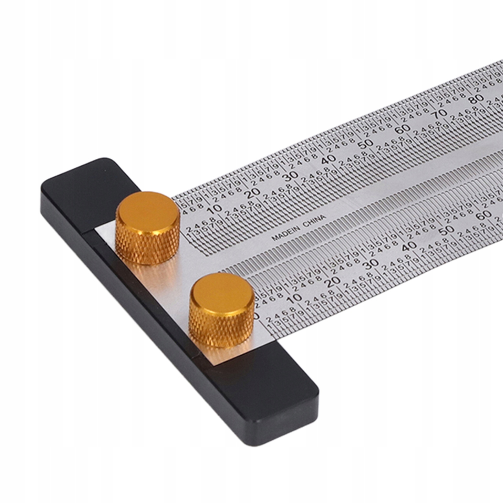 1. Малюйте вертикально: вставте кінчик ручки в маленьке коло, що відповідає масштабу, і обома руками перемістіть лінійку назад або вперед, щоб завершити малювання вертикально. 2. Горизонтальне малювання: використовуйте верхній і нижній краї лінійки та шкалу вгорі, щоб завершити горизонтальне малювання. 3. Зручна робота: призначена для функції позиціонування та маркування зразків деревини, операція є більш зручною. 4. Високоякісні матеріали: виготовлена з високоякісної нержавіючої сталі лінійка для накреслення є міцною, довговічною та стійкою до іржі. 5. Висока точність: завдяки передовій технології виробництва лінійка дуже точна та має діапазон вимірювань від 0 до 200 мм.