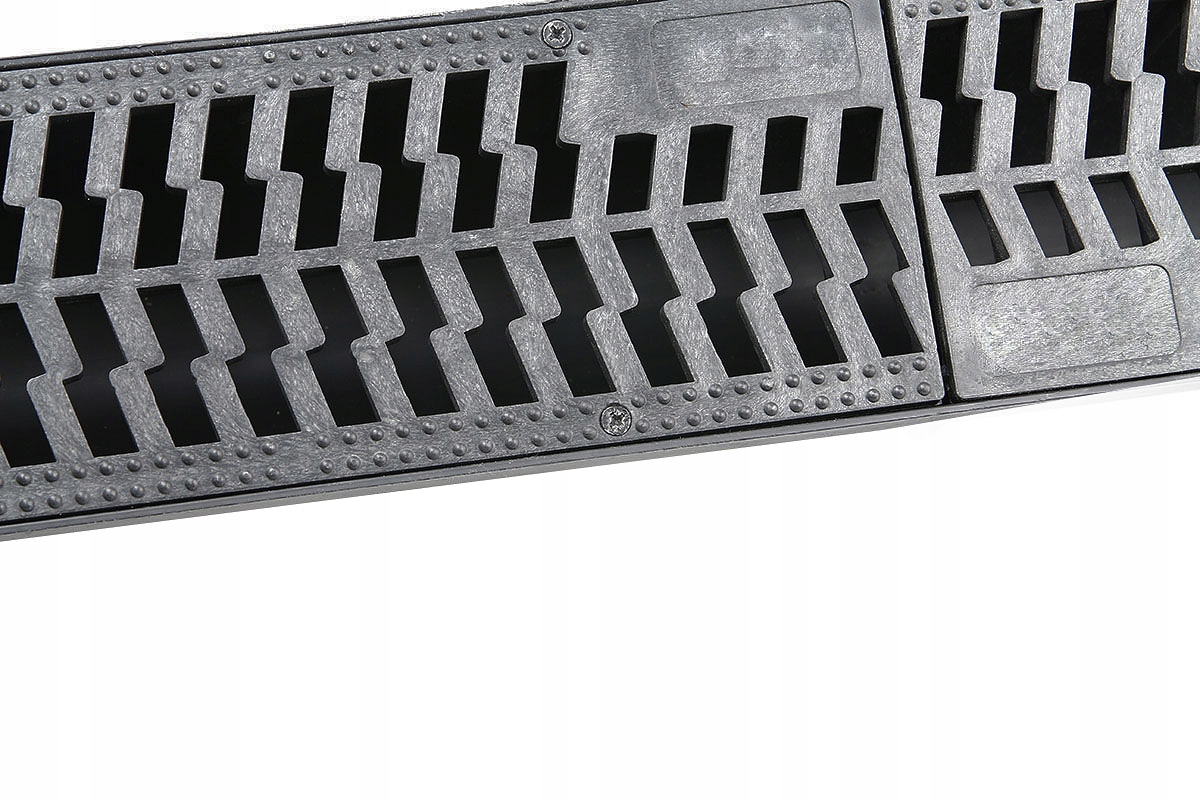 Пластиковий канал для монтажу дренажу має пластикову решітку.