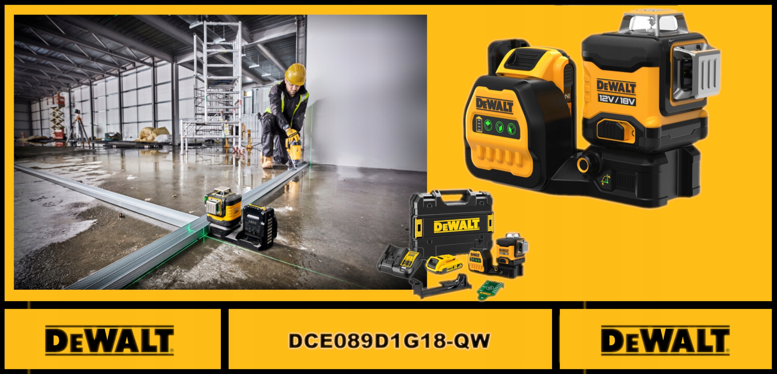 dewalt 18V/12V xr 3 x 360 Зелений лазер 1x2Ah -> dce089d1g18 -qw