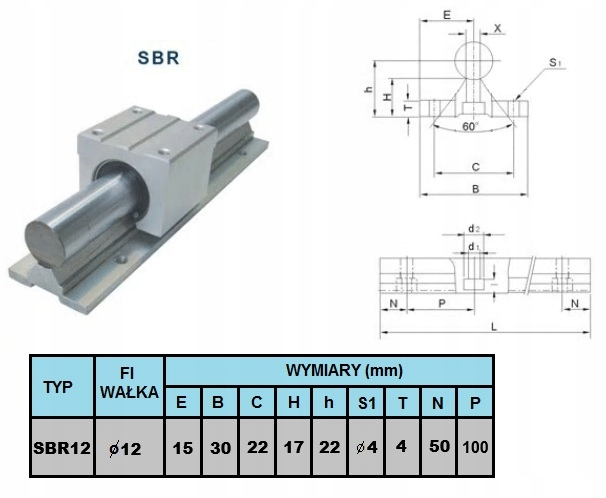 ЛІНІЙНА НАПРАВЛЯЮЧА SBR12 З ОПОРОЮ ВАЛ 500 мм FV