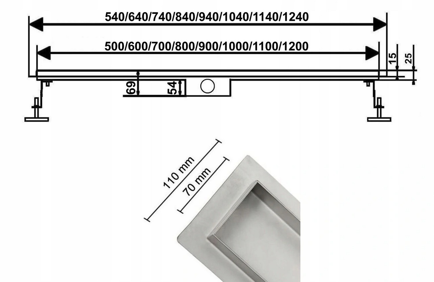 Лінійний дренаж 100 см низьких бульбашок