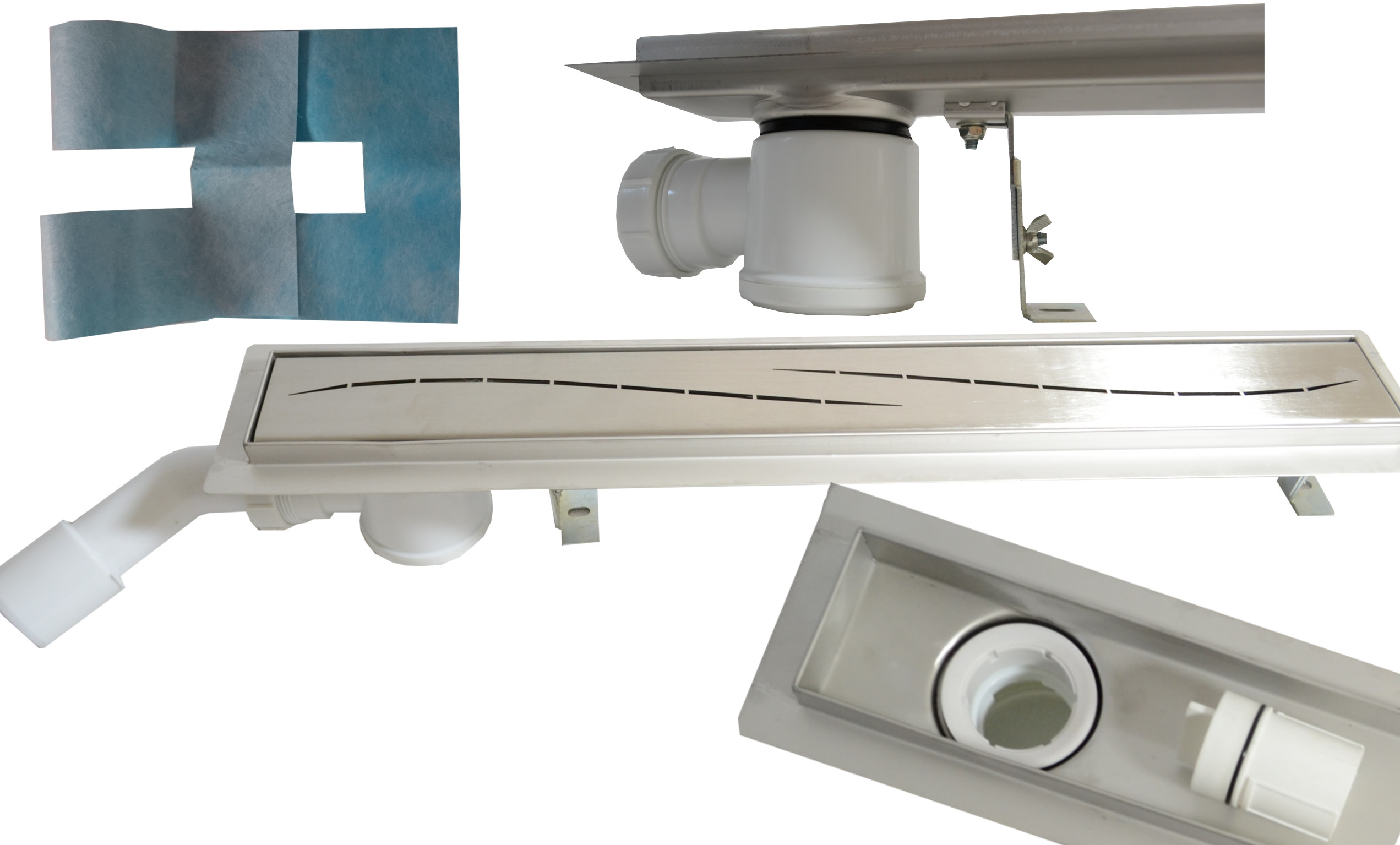 Лінійний дренаж з сифоном збоку, сифон обертається в будь-якому напрямку (360 градусів), в комплекті кришка (5 малюнків на вибір) з демпферними бортами. Розмір дренажу60 см x 7 см, додатково 2 см фланець з кожного боку, виготовлений з нержавіючої сталі SUS304, товщиною 1,2 мм (злив) і 1,5 мм (кришка)