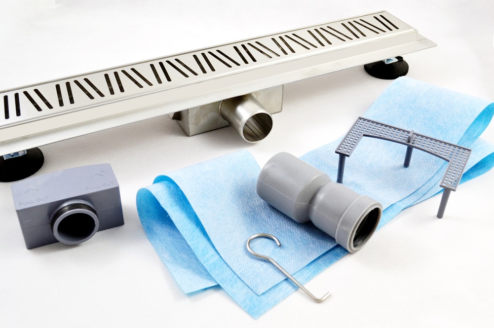 Лінійний дренаж з кришкою (5 конструкцій на вибір) з амортизаційні бампери. Розмір дренажу 80 см х 7 см, додатково фланець 2 см з кожного боку, виготовлений з нержавіючої сталі SUS304, товщиною 1,2 мм (злив) і 1,5 мм (кришка)