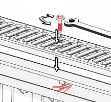 Послідовні сегменти з’єднуються один з одним за допомогою гачків, розташованих на кінцях або з боків. Канал завершується прикріпленням ковпачка. Решітка кріпиться до каналу за допомогою спеціального кріплення - входить в комплект.