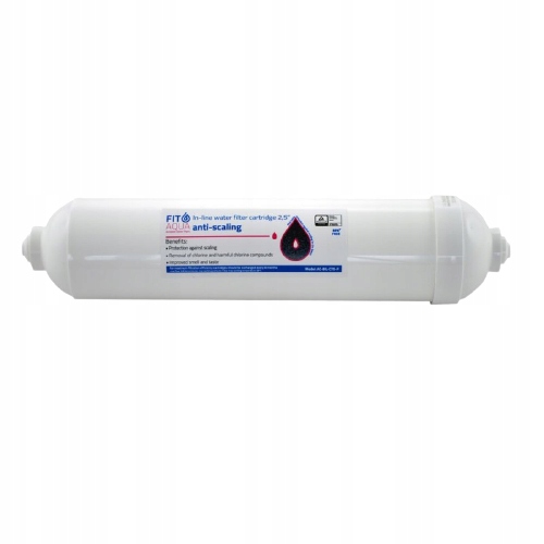 Торговий фільтр FITaqua 2,5″ виробляється в Польщі та призначений для фільтрації води з мережі водопостачання, особливо для джерел і диспенсерів води. Він складається з двох ступенів фільтрації. Карбоновий блок і харчовий поліфосфат для запобігання утворенню накипу. Сам фільтр зменшує механічні, хімічні та мікробіологічні забруднення, покращує смак і запах води. Крім того, адсорбційні властивості вугілля зменшують вміст хлору.