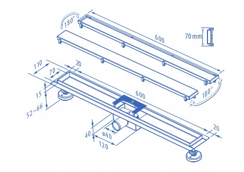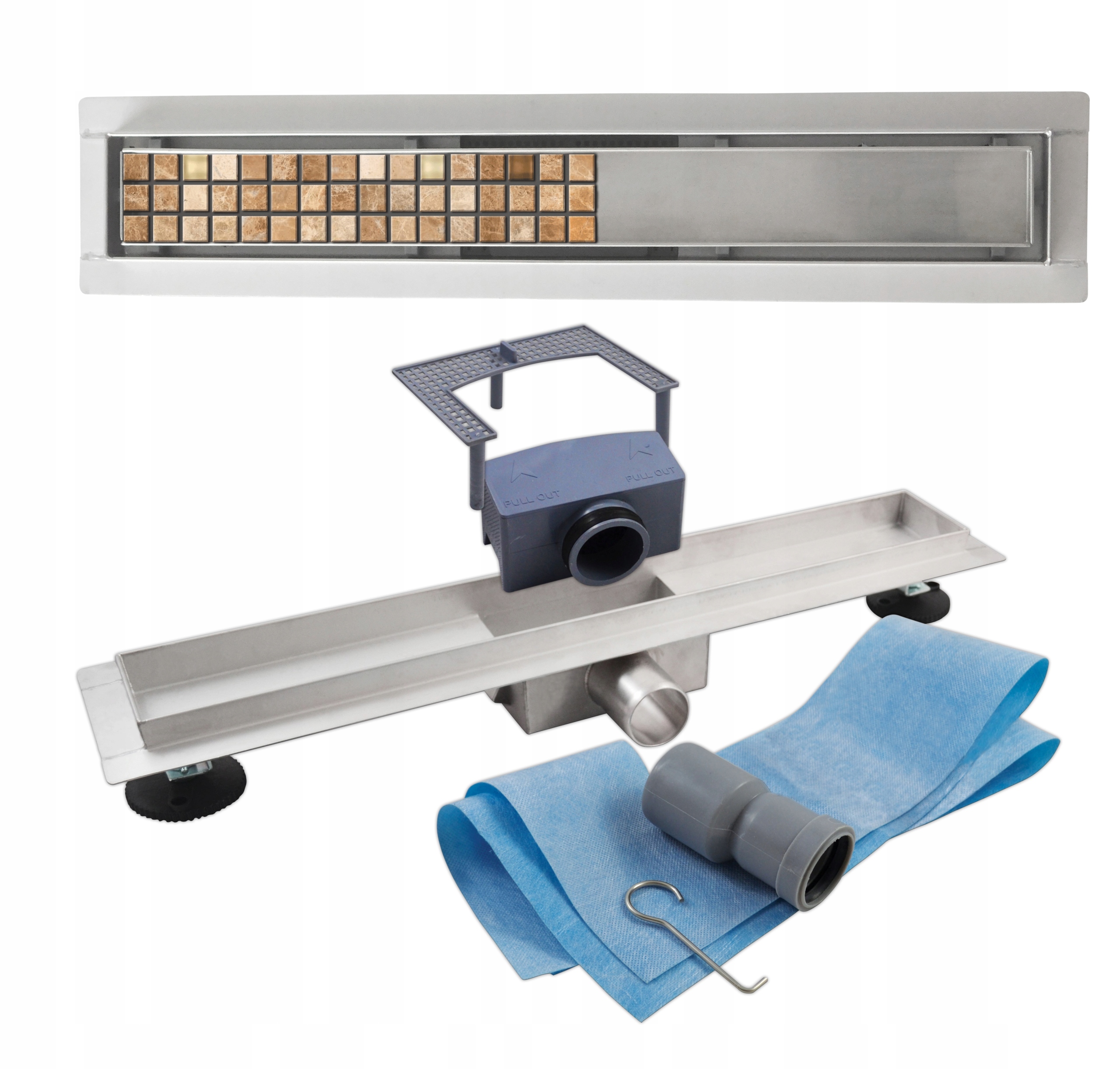Лінійний злив для душа 70 см х 7 см + решітка двостороння. Решітка приклеюється з одного боку до будь-якої плитки, після перевертання, міцна сталь